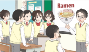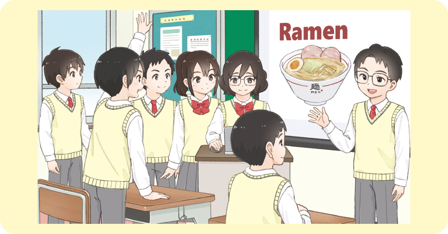 通常課はマンガやアニメ動画で新出表現を導入します。場面シラバス中心だった小学校英語からスムーズに中学校に接続できます。